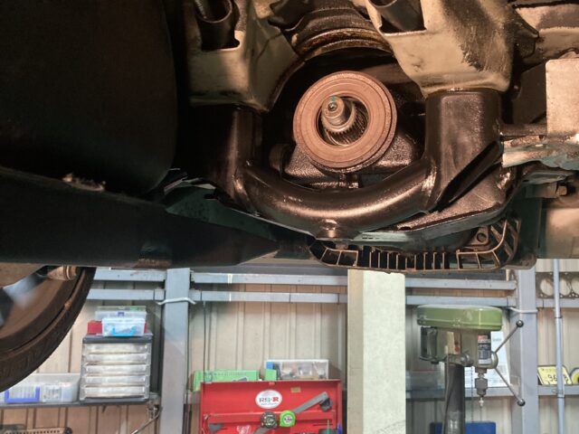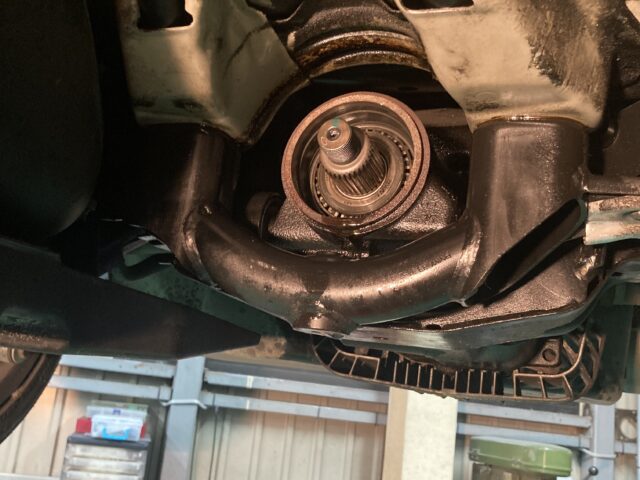 シール交換をするにはマフラー、プロペラシャフト、アンダーカバー等を外さなければ出来ません。結構大変です。